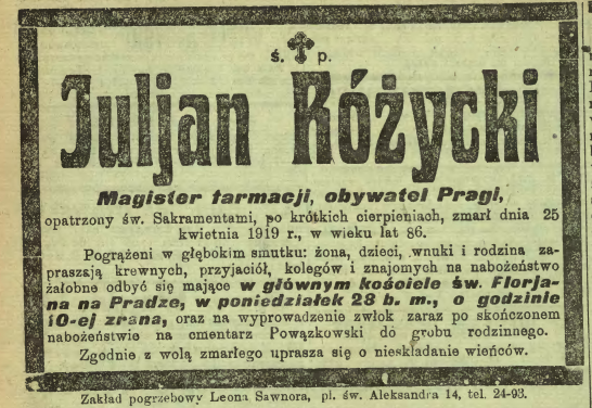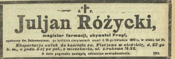 Po jego śmierci, w maju 1919 r., "Wiadomości Farmaceutyczne" pisały: